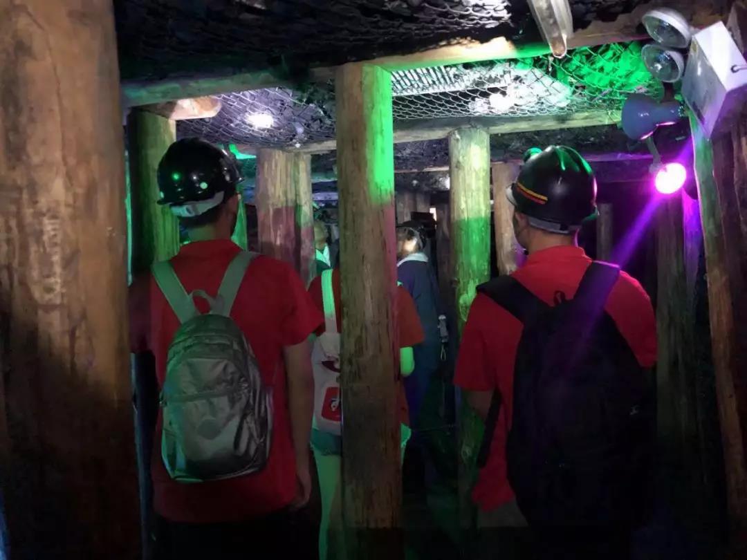 中国煤炭博物馆的镇馆之宝是“模拟矿井”,这是亚洲最大,全国第一个实景体验1:1复制的地下模拟矿井。实践队乘坐电梯下到模拟矿井之下,戴上头盔,坐着运载小火车深入到矿井深入,开始最为奇妙的矿井之旅。