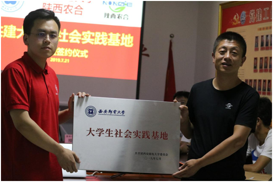 在农合信息科技(陕西)有限公司,实践团认真聆听了公司总经理张成兴对公司的介绍,了解到农民合作社运营管理实务。北京农合CEO张利为团队成员详细讲解了合作社的发展与实操。与会人员就产品推广、销售渠道等问题进行了交流,“合力兴农”团队与农合信息科技(陕西)有限公司确定了长期交流合作意向,签订了“共建大学生社会实践基地”协议书并举行了授牌仪式。