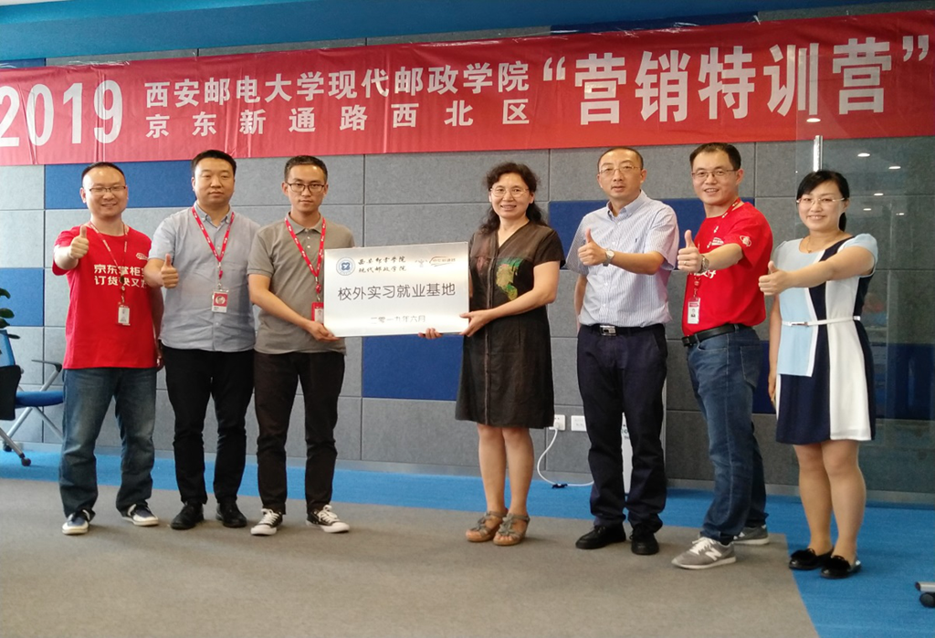 本网讯 (通讯员 李莹)6月10日,现代邮政学院京东校外实习就业基地揭牌仪式在西安京东大厦举行。京东新通路西北区总经理陈飞、陕西省区域经理郭栋梁、人力资源部经理周宇峰、终端管理部市场总监陈骁、现代邮政学院院长薛蓉娜、党总支书记郭琪及师生代表70余人参加揭牌仪式。