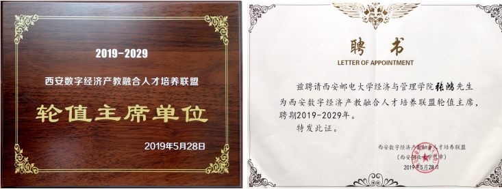 论坛成立了“西安数字经济产教融合人才培养联盟”,我校经济与管理学院成为第一届轮值主席单位,经济与管理学院院长张鸿被聘为联盟轮值主席。