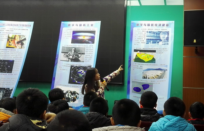 本网讯 12月27日下午,理学院数模指导教师陈诚带领我校数模协会志愿讲解员走进西安市明德门小学,针对五、六年级100多名小学生开展了“应用数学知识”科普巡展及讲解活动。