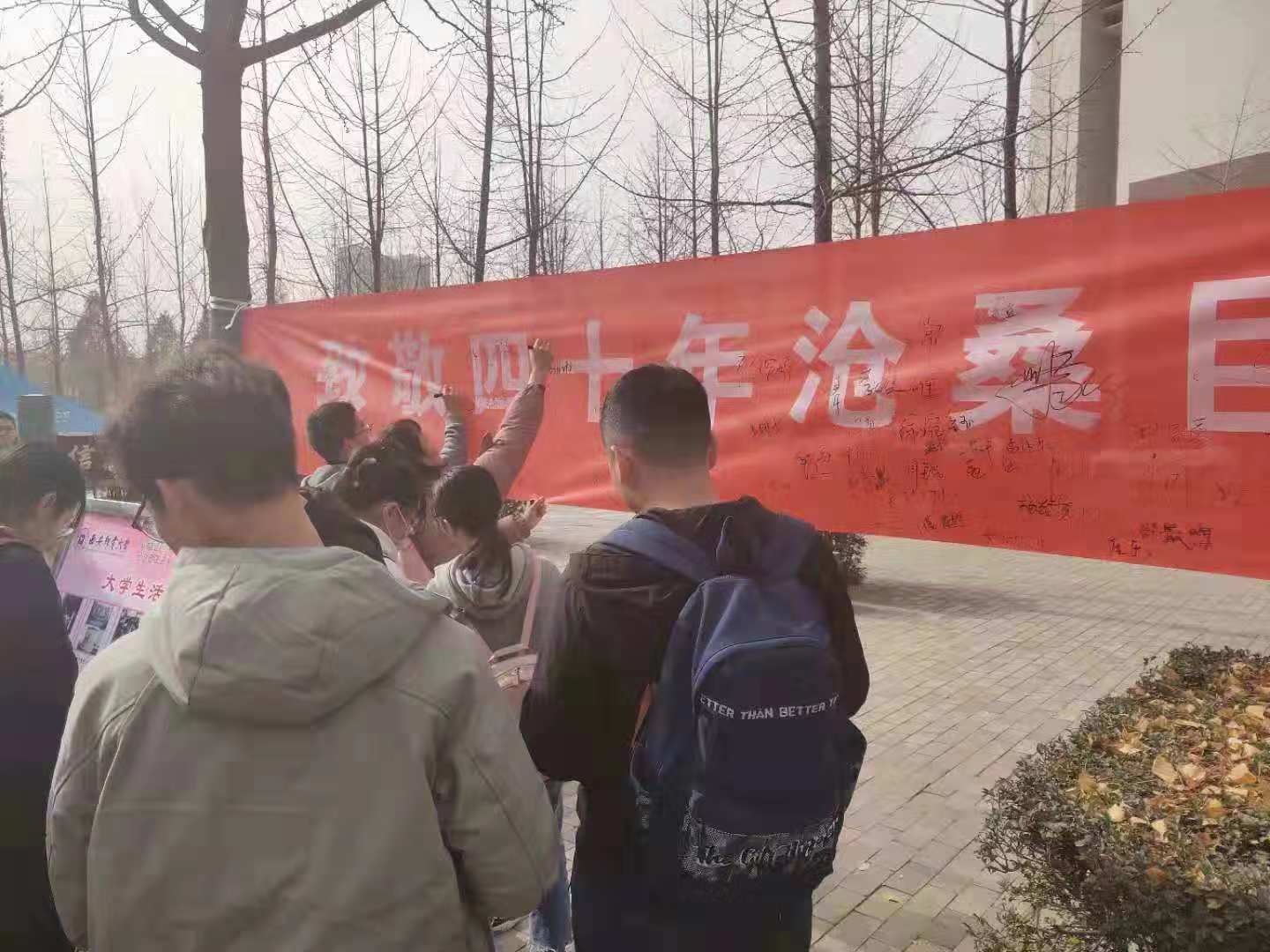 图片展涉及航空、通讯、农业、工业、建筑、出行、科技变迁、购物方式、大学生活以及我校发展历程等多个领域,全面展示了我国改革开放40年来取得的成就和我校发展取得的成绩。图片展吸引了众多师生驻足观看,同时还积极参与进“致敬四十年沧桑巨变,共谱未来锦绣诗篇”横幅签名活动中,以此来纪念我国改革开放四十周年,表达自己的爱国之情。大家纷纷表示,图片展主题鲜明、内容丰富,真实地再现了我国改革开放的光辉历程与巨大成就,看了图片展备感振奋,很受鼓舞。电科1801班的杨颖同学说:“作为新时代大学生一定要在习近平新时代中国特色社会主义思想指引下,努力学习,发挥自己专业的特长,为早日实现中国梦贡献自己的力量”