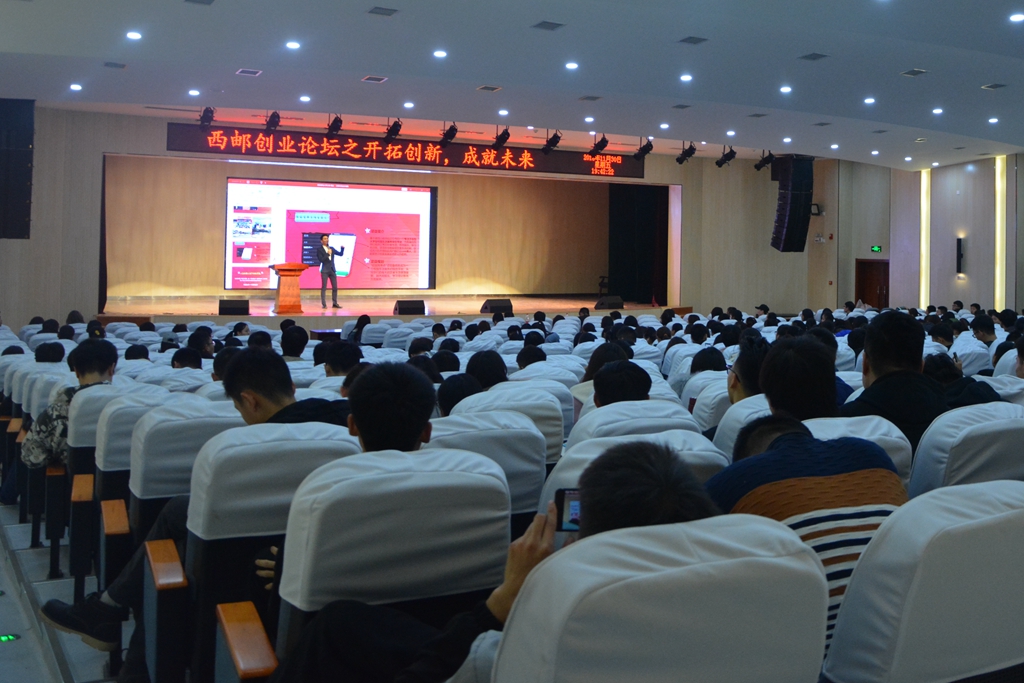 本网讯 11月30日,校团委在雁塔校区图书馆五楼礼堂举办第9期西邮创业论坛。西安亿邦教育科技有限公司创始人马宝铃、成都杏仁网络科技网络有限公司CEO杨杰为同学们讲述创业经历。