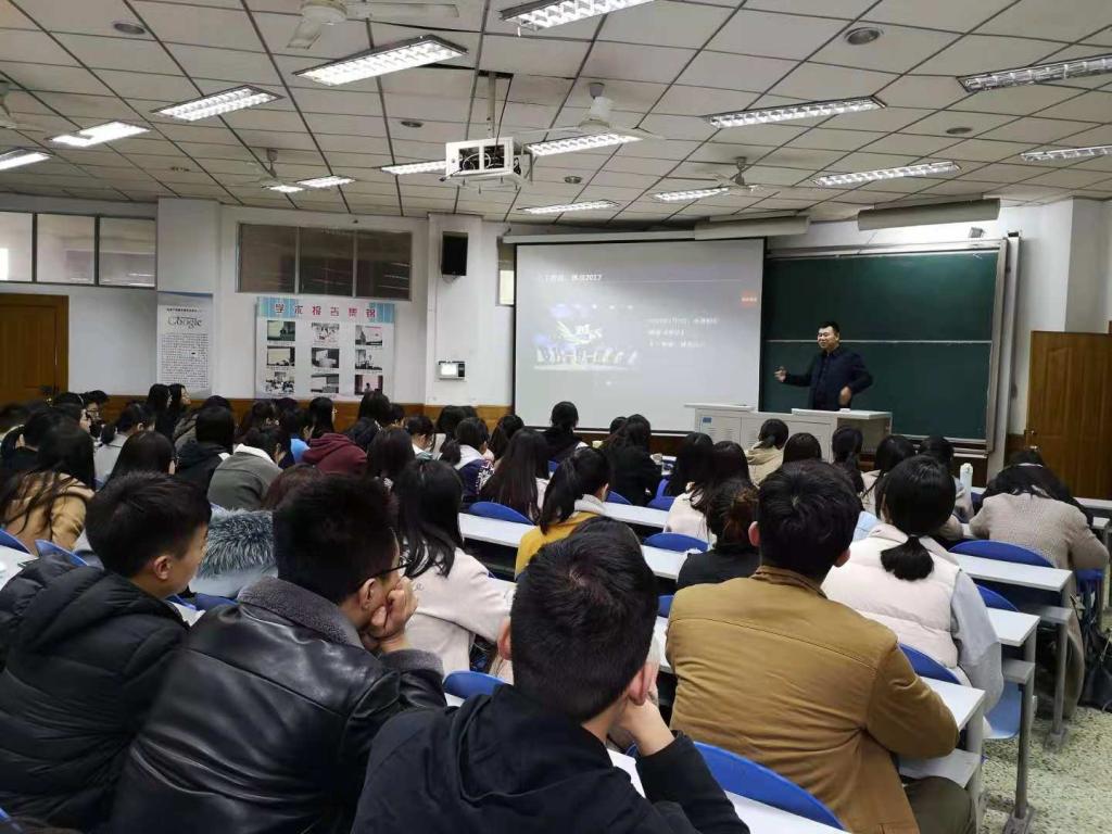 本网讯 11月6日下午,经济与管理学院会计学系举办“西邮会计讲坛”第一讲。金蝶西安事业部总经理陈碧海为2017年会计学专业本科生作题为《智能时代下财务大数据应用及财会人的创新思维》的讲座,会计系支部书记刘飞主持会议。